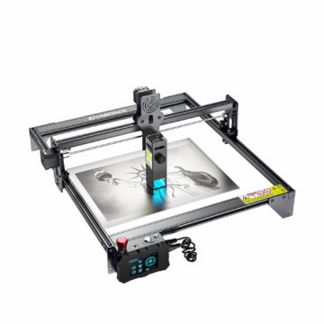 Der Lasergravierer unterstützt die Offline-Gravur, verfügt über einen Not-Ausschalter und ein horizontales Gyroskop. Das Panorama-Filterglas filtert 97 Prozent des vom Laser abgegebenen ultravioletten Lichts und ermöglicht, auf das Tragen einer Schutzbrille zu verzichten. Der Hochleistungs-Fixfokus-Laser nutzt die verbesserte Dual-Kompressionspunkt-Kopplungstechnologie, die mit einer integrierten Gewindestange und einem integrierten Schrittmotor arbeitet. Der Brennfleck des Lasers misst nur 0,06 x 0,06 mm, die Sinterungstemperatur beträgt bis zu 1.200 Grad Celsius. Des Weiteren ist seine Laserleistung stabiler als die eines Zoom-Lasers. Er erreicht eine Graviergeschwindigkeit von bis zu 11.000 mm/min und ist somit Herstellerangaben zufolge um etwa 40 Prozent schneller als vergleichbare 150 W CO²-Lasergravierer. Er kann bis zu 20 mm dickes Holz und 15 mm starkes schwarzes Acryl schneiden.