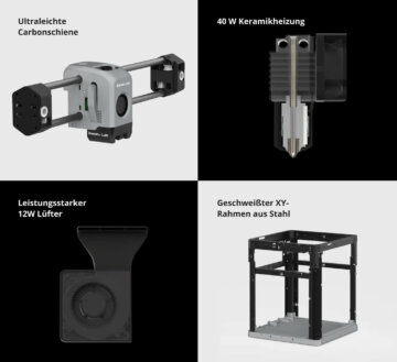 - CoreXY-Technologie mit 20.000 mm/s² Beschleunigung