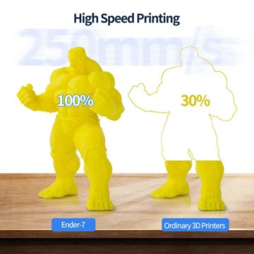 Der Ender 7 FDM-3D-Drucker vom Hersteller Creality bietet dank unfassbar schnellen Druckgeschwindigkeiten (max. 250 mm/s) eine vollkommen neue Erfahrung für die Nutzer. Neben Hochgeschwindigkeits-3D-Druck überzeugt der Ender 7 auch mit leistungsstarker, stabiler und präziser Performance. In Kombination mit dem Bauvolumen von 250 x 250 x 300 mm können ziemlich schnell qualitativ hochwertige Druckergebnisse erzeugt werden.