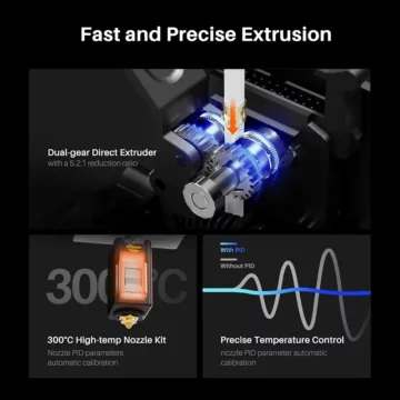 - Dual-Gear Direktextruder mit einem 5.2:1 Übersetzungsverhältnis
