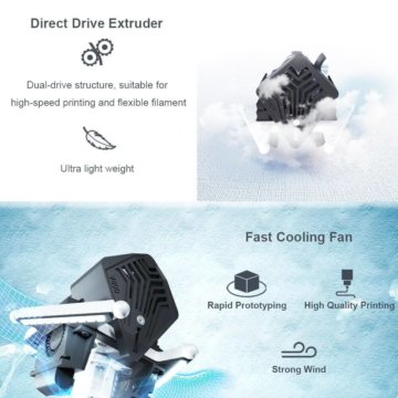 Im 3D-Drucker ist ein 7-Zoll-Weitwinkel-IPS-Bildschirm verbaut und eine vollständige Klipper-Firmware vorinstalliert. Eine zusätzliche Konfiguration ist Herstellerangaben zufolge nicht notwendig. Der Direktextruder kann eine Extrusionskraft von 70 N erreichen. Durch eine spezielle Bi-Metall-Struktur sind Temperaturen von bis zu 300 Grad Celsius möglich. Für die Kühlung sorgen zwei Dual-Kugel-Lüfter-Kühlsysteme. Ein Sensor erkennt, wenn das Filament gebrochen ist oder die Spule leer ist und unterbricht den Druck automatisch. Nach dem Austausch des Materials wird der Druck automatisch fortgesetzt.