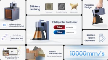 Der LaserPecker LP5 im Basic Bundle ist ein innovativer All-in-One-Lasergravierer, der sich durch seine Dual-Laser-Kombination auszeichnet. Ein 20W Faserlaser und ein 20W Diodenlaser decken ein breites Spektrum an Materialien ab â von Metall ĂŒber Kunststoff bis hin zu Holz oder Leder. Besonders hervorzuheben ist die Gravurgeschwindigkeit von bis zu 10.000 mm/s, wodurch sich der LP5 sowohl fĂŒr prĂ€zise Einzelanfertigungen als auch fĂŒr kleinere Serienproduktionen eignet.