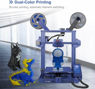 Metall Doppel Extruder: Dieser FDM-3D-Drucker ist mit zwei Ganzmetall-Extrudern ausgestattet und unterstützt den automatischen Wechsel von zweifarbigen Filamenten in einer einzigen Düse. Mit dem Doppelzahnrad-Extruder bietet es einen besseren und genaueren Druck.