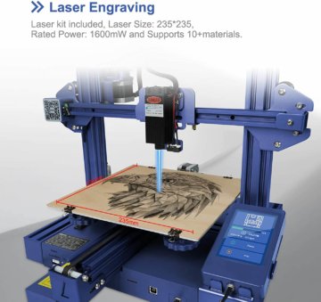 3D-Druck & Lasergravur: Mit dem LOTMAXX SHARK V2 3D Drucker haben Sie die Möglichkeit die Funktionen des 3D-Drucks und der Lasergravur in einem Gerät zu erhalten. Das Laser-Kit ist enthalten und bietet einer Lasergröße von 235 x 235 mm. Der 3D-Drucker unterstützt 1,6W Lasergravur und kann mehr als 10 Materialien wie Holz, Kunststoff, Papier usw. gravieren.