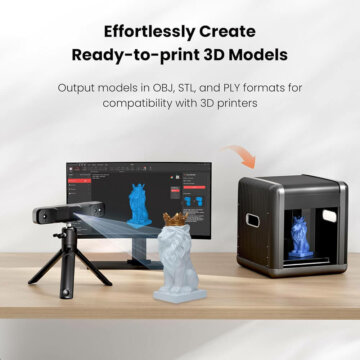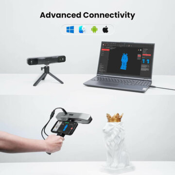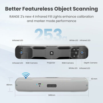 Die kostenlose Revo Scan-Software ermöglicht eine intuitive Bearbeitung der 3D-Scans, während die automatische Modellverarbeitung per Klick besonders nutzerfreundlich ist. Mit seinem leichten Design und der mobilen Konnektivität ist der RANGE 2 der ideale Begleiter für professionelle Anwender und 3D-Druck-Enthusiasten gleichermaßen.