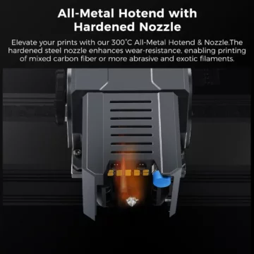 - 300°C All-Metal-Hotend mit gehärteter Stahldüse: Ideal für abrasive Materialien wie Kohlefaser.