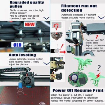 - Hochwertige Riemenscheibe: sorgt für stabile Bewegungen, hohe Druckgenauigkeit, längere Nutzungsdauer, unterstützt Hochgeschwindigkeitsbetrieb und ist geräuscharm