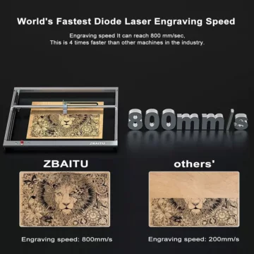 Der ZBAITU S60 30W Lasergravierer und -schneider revolutioniert mit seinen fortschrittlichen Funktionen und der außergewöhnlichen Leistung die Welt der Lasergravur. Mit einer atemberaubenden Geschwindigkeit von 40000mm/min sorgt der Gravierer für eine schnelle und effiziente Bearbeitung Ihrer Projekte. Das Herzstück dieser Maschine ist ein robustes Aluminiumlegierungsrahmen-Design, welches eine stabile und zuverlässige Leistung gewährleistet. Die großzügige Arbeitsfläche von 80x60cm bedeutet, dass Sie auch größere Projekte mühelos bearbeiten können, was den ZBAITU S60 zum idealen Werkzeug für eine Vielzahl von Anwendungen macht.
