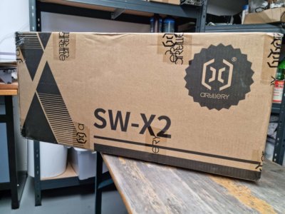 Wie sein Vorgänger wird auch der Sidewinder X2 in einem Karton gut verpackt geliefert. Sobald die zwei wesentlichen Teile des 3D-Druckers entpackt sind, kann es mit der Montage losgehen. Diese wird durch die mitgelieferte Anleitung unterstützt und ist nicht sonderlich schwer. Irgendwie ist der Begriff Aufbau beim X2 fast schon übertrieben, da der Drucker aus verpackungstechnischen Gründen in zwei Teilen geliefert wird, die lediglich noch mit wenigen Schrauben befestigt werden sollen. Bereits nach 10 Minuten sollte der ganze Prozess fertig sein. Die Montage des Filamenthalters ist jedoch mit einem etwas größeren Zeitaufwand verbunden.