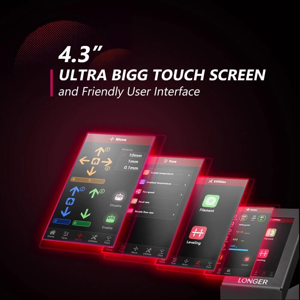★ 4,3-Zoll Farbdisplay: Das Display des LK5 Pro von Longer verfügt über einen reaktionsschnellen Touchscreen mit hoher Berührungsempfindlichkeit und benutzerfreundlicher Oberfläche. So kann der Longer LK5 Pro schnell, einfach und bequem gesteuert und die Druckparameter angepasst werden.