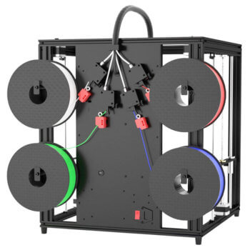 Das Hauptmerkmal des neuen Zonestar Z9V5 ist das 4-in-1-out Hotend und die Möglichkeit, beim Druckvorgang eine von den 4 Druckmodi auszuwählen: Einfarbendruck, Zweifarbendruck, Vierfarbendruck und Mischfarbendruck. Eine einfache Montage sowie viele unterstützende Features, wie z. B. der Filamentsensor, die Wiederaufnahmefunktion oder die automatische Bettnivellierung machen den Start und die Einstellungen des Zonestar Z9V5 Pro flüssiger und einfacher.