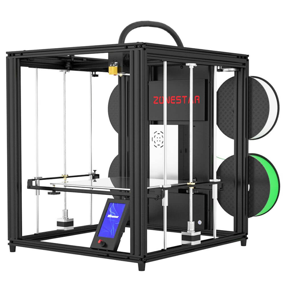 Der Z9V5 Pro aus dem Hause ZONESTAR ist ein FDM-3D-Drucker aus dem mittleren Preissegment (Preis aktuell ca. 570 €). Das Gerät ist mit einigen interessanten Features ausgestattet und liefert insgesamt eine gutes Benutzererlebnis, insbesondere für die etwas erfahrenen Nutzer unter den 3D-Drucker-Fans. Der Hauptgrund dafür lässt sich im Extruder finden, denn es handelt sich dabei um einen 4-in-1-out Extruder der gedruckte Objekte aus bis zu vier Farben möglich macht. Somit handelt es sich beim Zonestar Z9V5 Pro um einen Mehrfarbendrucker, der insgesamt vier unterschiedliche Druckmodi unterstützt. Dadurch wird die Kreativität der 3D-Druck-Fans frei entfaltet und ermöglicht bei der Fertigung von 3D-Druckobjekten eine noch breitere Anwendungsspanne. Obwohl der Zonestar Z9V5 Pro einfach zu bedienen ist, ist das Gerät aufgrund des Mehrfarbendrucks nicht unbedingt für totale Einsteiger in die 3D-Druck-Welt geeignet. Lediglich diejenigen Einsteiger mit viel Zeit und starken Nerven dürfen sich wagen, mit diesem Mehrfarbendrucker ihre ersten Erfahrungen zu machen. Für Profis hingegen steht nichts im Wege, da der Z9V5 Pro sicherlich neue und interessante 3D-Druck-Herausforderungen mit sich bringt.