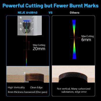 Mit dem NEJE 3 Max bringt NEJE eine Lasergravur- und Schneidemaschine mit einem leistungsstarken 12W+ Diodenlaser auf den Markt. NEJE verspricht saubere Ergebnisse, ohne Wellenlinien. Das automatische Air Assist Kit verbessert die Schneide- und Gravurergebnisse. Auf seiner Website unterstützt NEJE seine Kunden mit zahlreichen Tipps und Informationen, wie jeder das Beste aus dem NEJE 3 Max herausholt. Für unter 600 Euro liefert der NEJE 3 Max Ergebnisse in Industriequalität und ist kinderleicht in der Bedienung.
