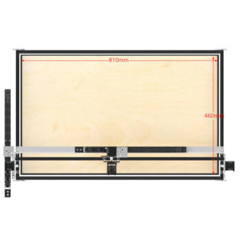 Der Lasergravierer wird mit einem Arbeitsbereich von 810 x 460 mm geliefert.