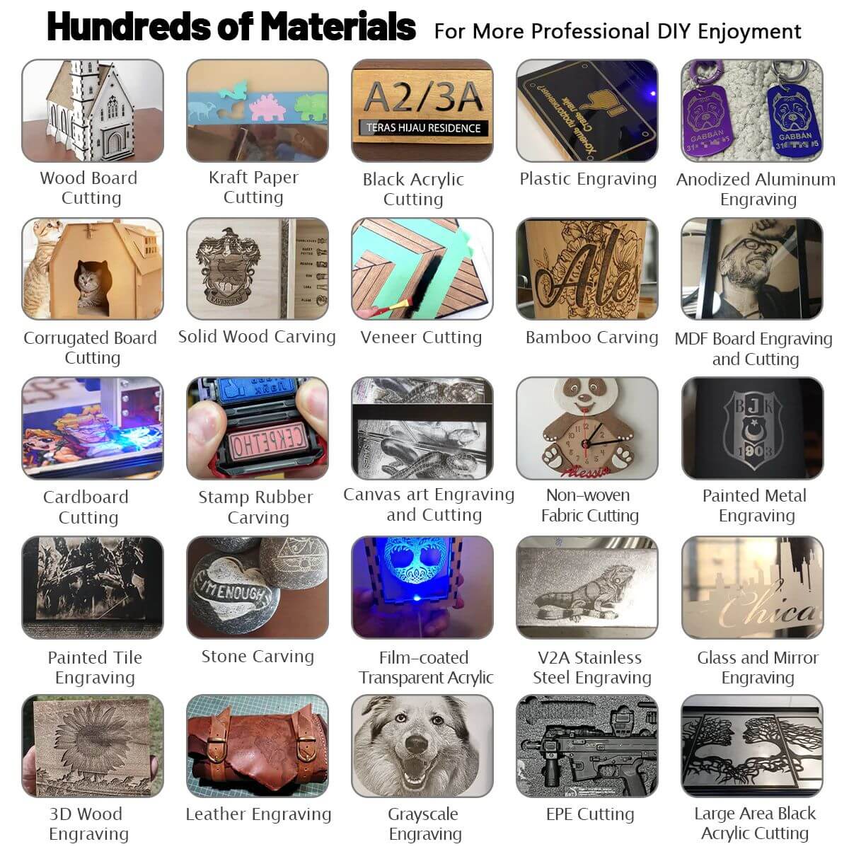 + Kann sehr viele Materialien schneiden und gravieren.